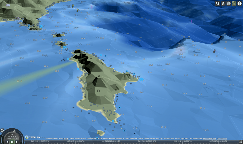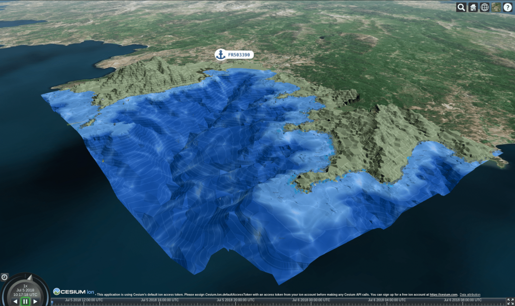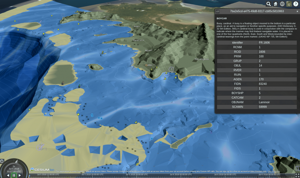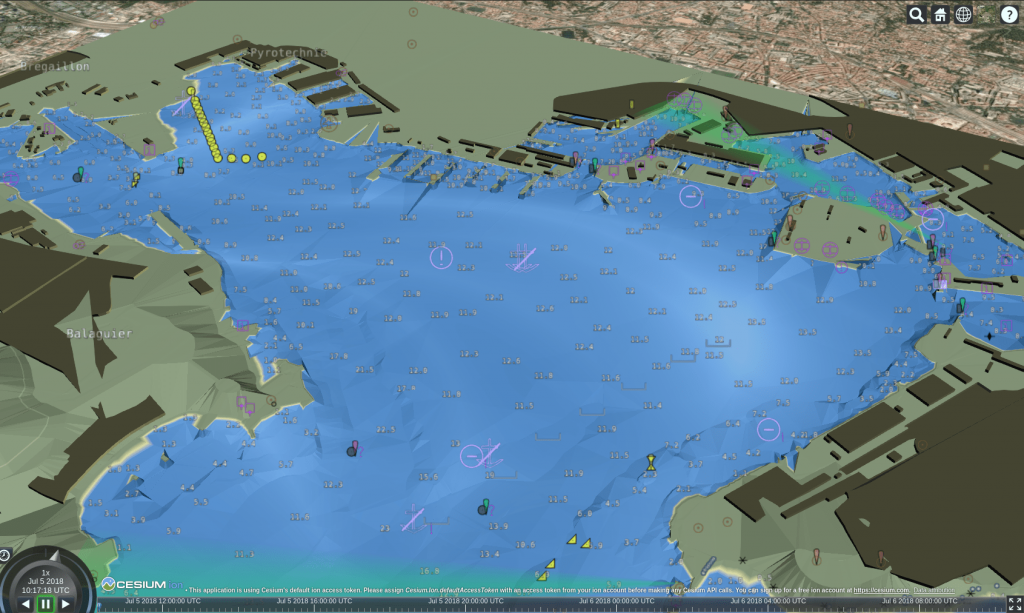 Avant de commencer voici un aperçu pour vous ouvrir l’appétit et montrer ce qui peut être fait avec 3D Tiles et les données 2D S-57 de navigation maritime.