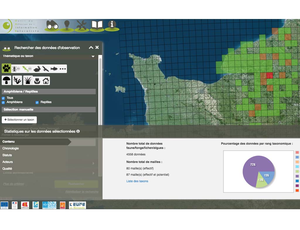 Le projet ODIN (Outils de Diffusion de l’Information Naturaliste) de la région Normandie, a fait appel aux compétences de Geomatys pour le développement de sa plateforme. Celle-ci propose des données brutes sur la faune, la flore et l’habitat en Normandie, des cartes de synthèses et des services de traitement.