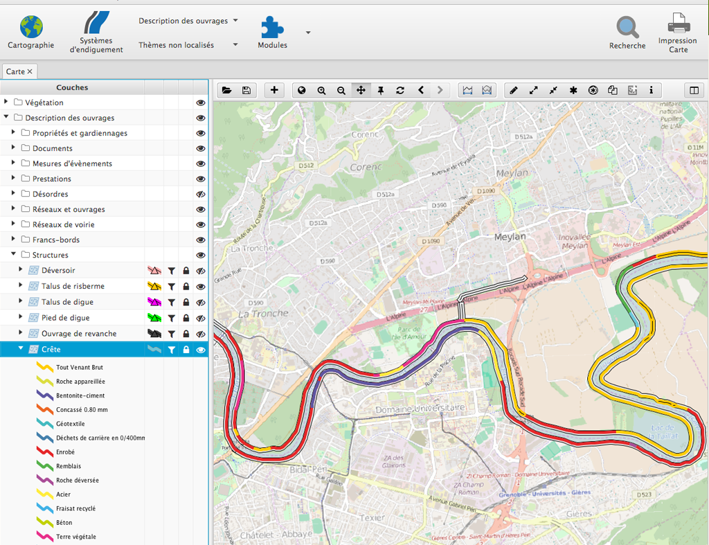 Dans ce cadre, Geomatys a conçu un Système d’Information Géographique de gestion des digues pour le compte de l’association France Digues (SIRS Digues). L’application permet la collecte, le stockage, l’analyse et l’échange des données entre les différents gestionnaires de digues. La solution est composée d’une application de bureau pour la gestion avancée et d’un outil mobile pour les actions terrains, disponible en ligne et hors ligne.